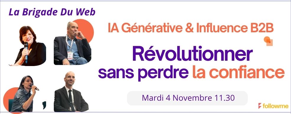 Pour en savoir plus, je vous invite à assister à une conférence de La Brigade Du Web, collectif d’influenceurs B2B, à l’occasion du salon FollowMe Paris.